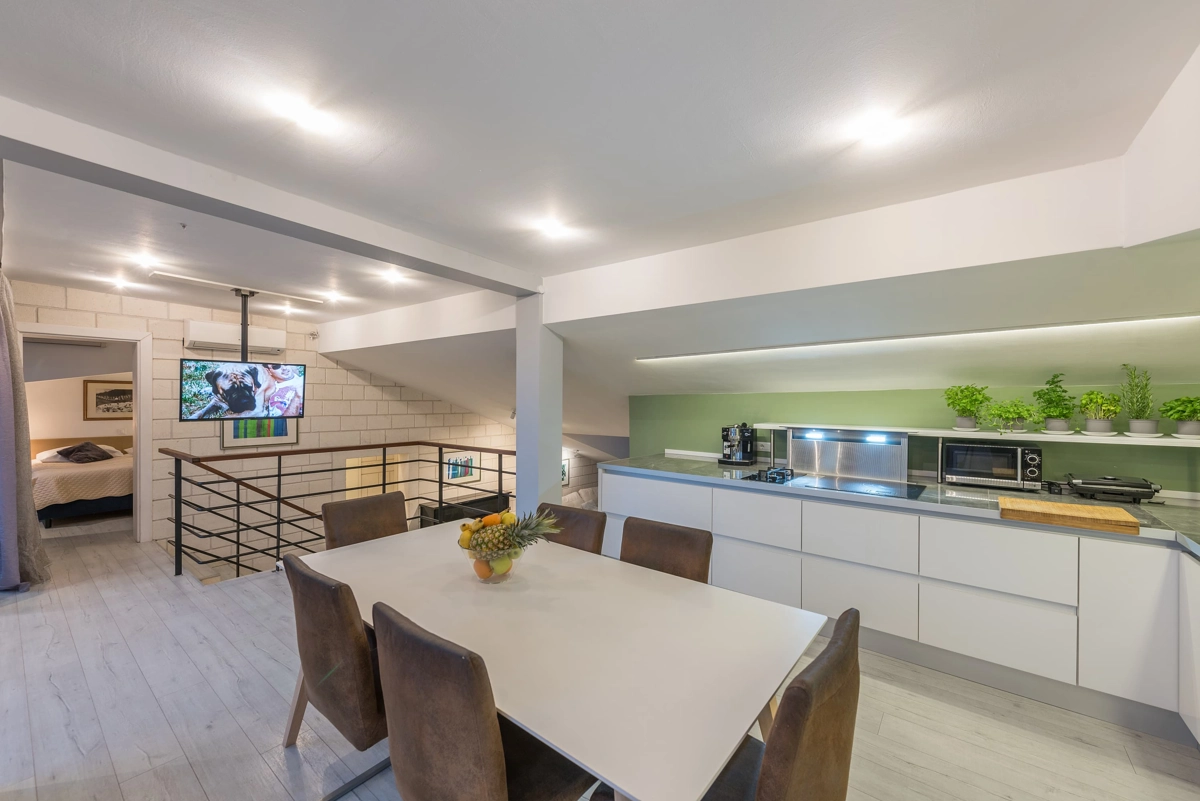 This modern penthouse apartment, just a two-minute walk from the main beach in Makarska, offers luxurious accommodation with stunning views of the sea and the city.