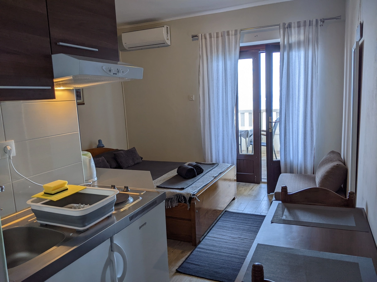 The property is located in an excellent spot, right on the beach in Drašnice. It consists of two apartments and two studio apartments. Each apartment has its own terrace, offering the feeling that you could just step into the sea.