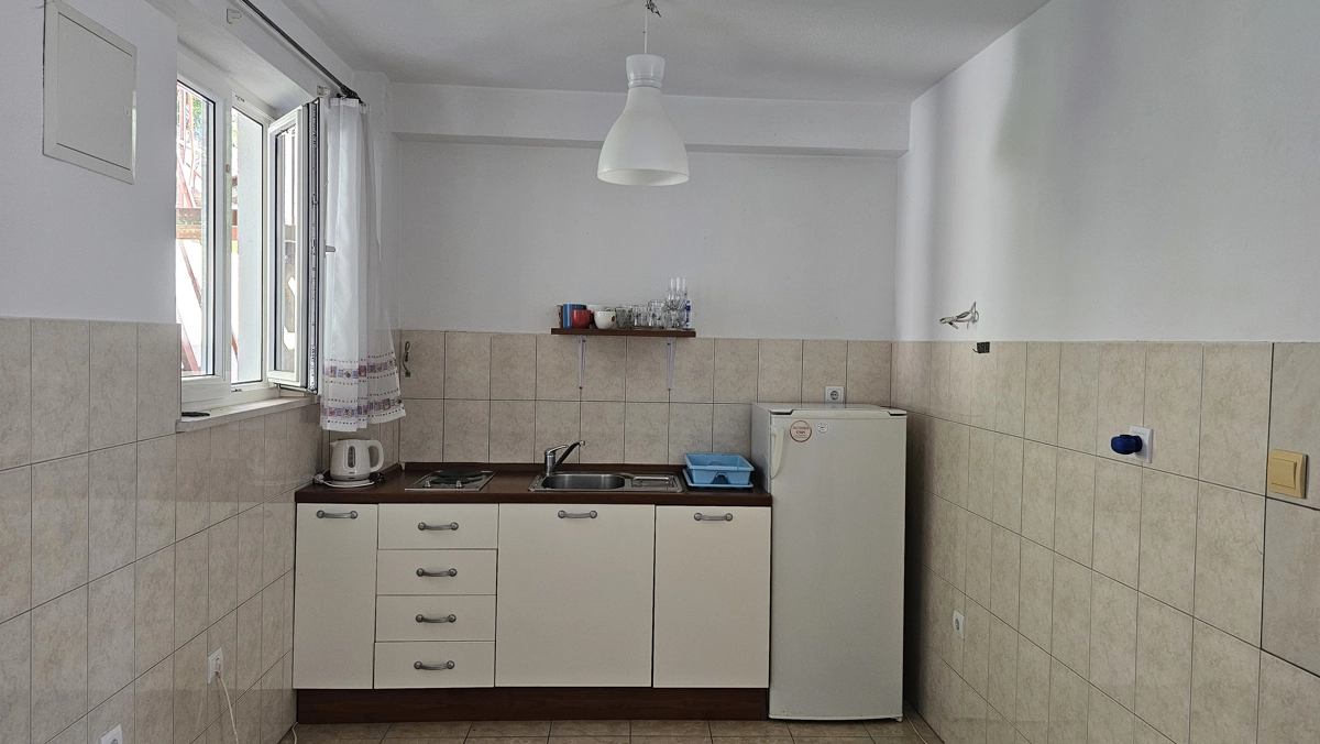 The property is located in an excellent spot, on the promenade in the center of Živogošće. Inside, there is one studio apartment and one apartment for four people.